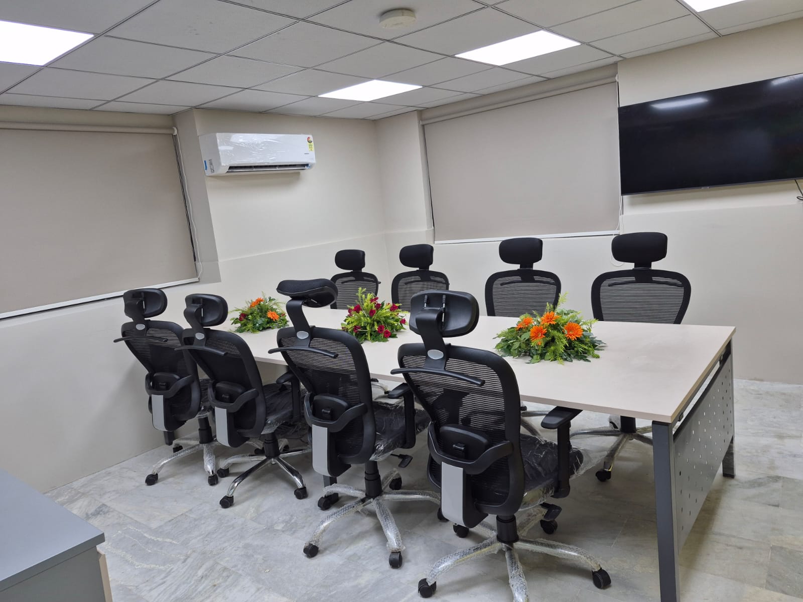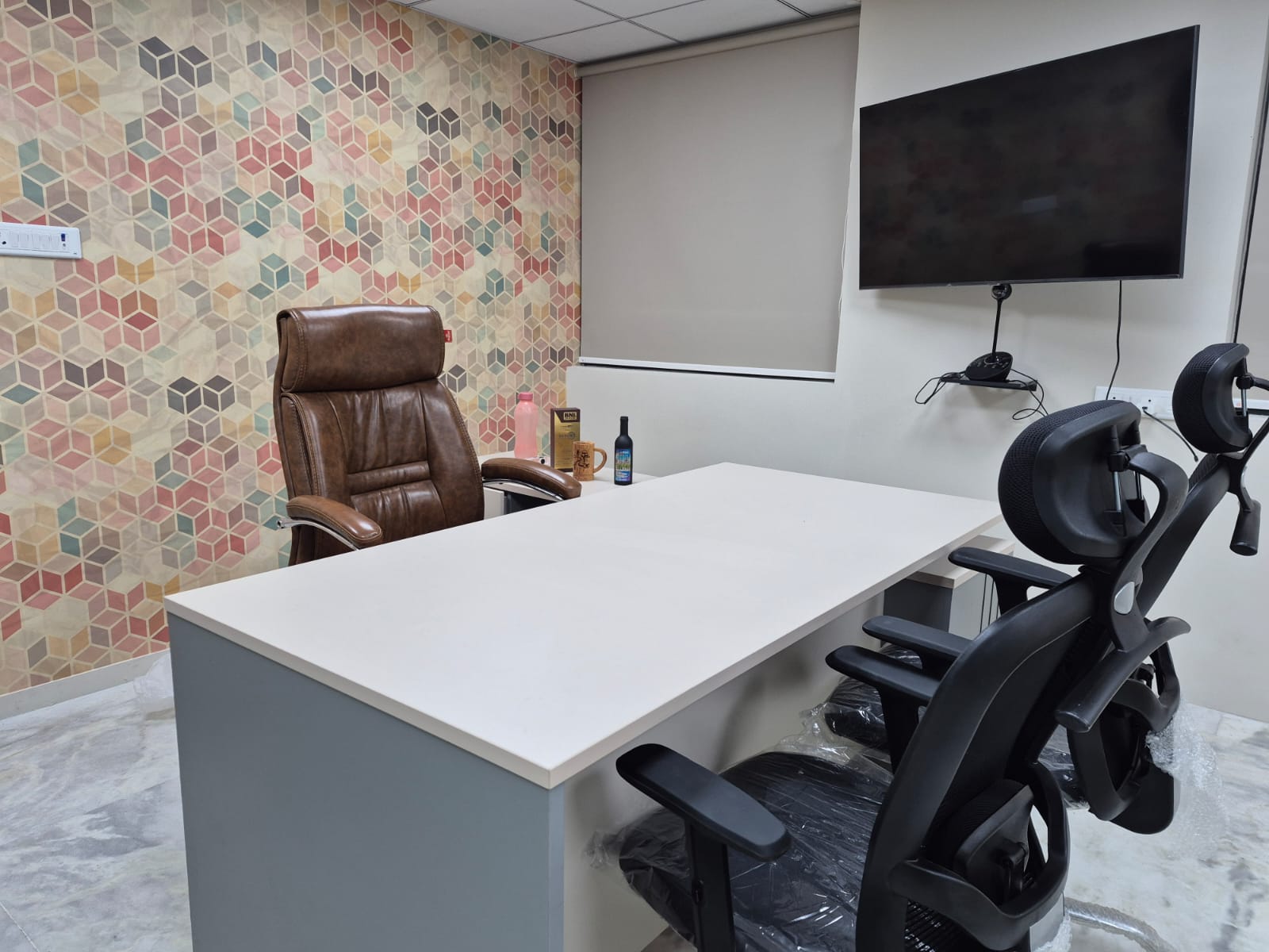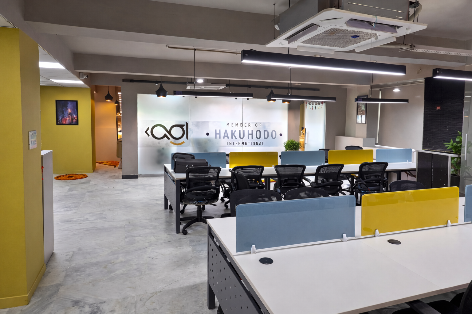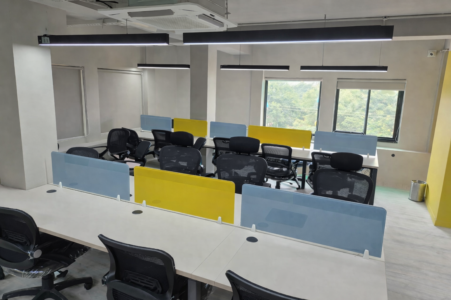 We designed a customized office for Aarna Co-working & Business Hub in Lal Kothi, Jaipur, crafted for a multinational media management company. The interiors feature a modern design language with vibrant color accents set against a refined off-white backdrop. Elegant wall paneling, detailed finishes, and scenic window views enhance the space, creating a lively yet sophisticated corporate environment.