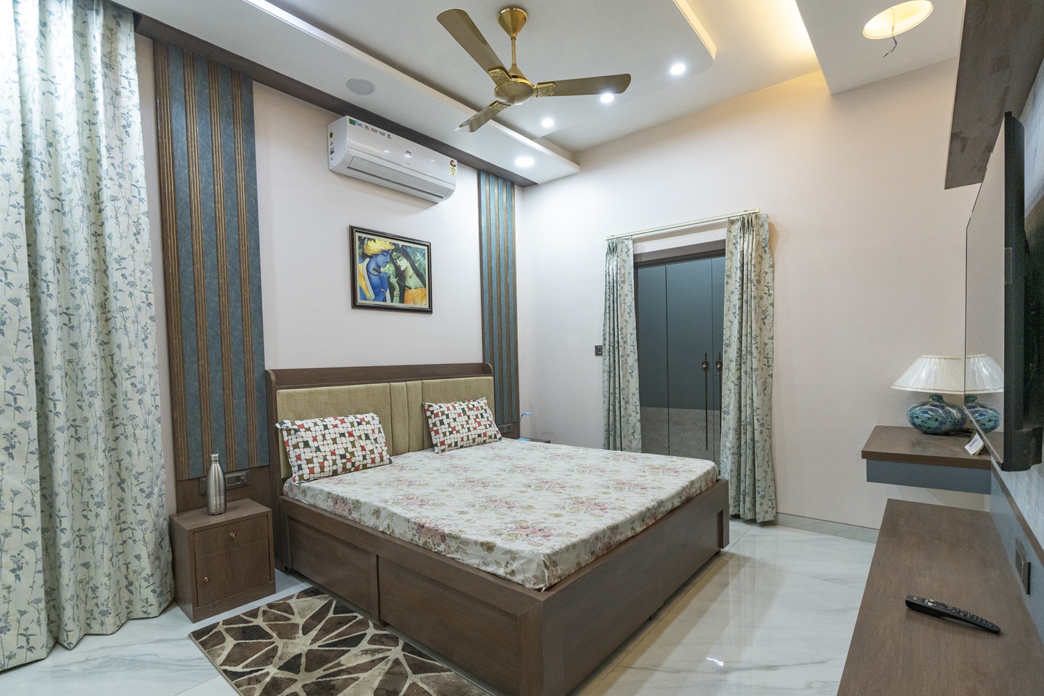This 3-bedroom bungalow blends contemporary design with comfort, creating a modern yet inviting home. Each room is styled in rich taste as per client’s need, offering a serene and elegant atmosphere. Thoughtful interiors balance functionality with aesthetics, making this modern bungalow both stylish and livable.