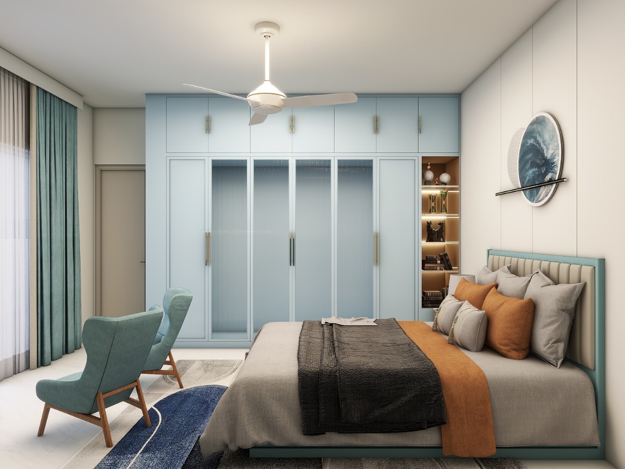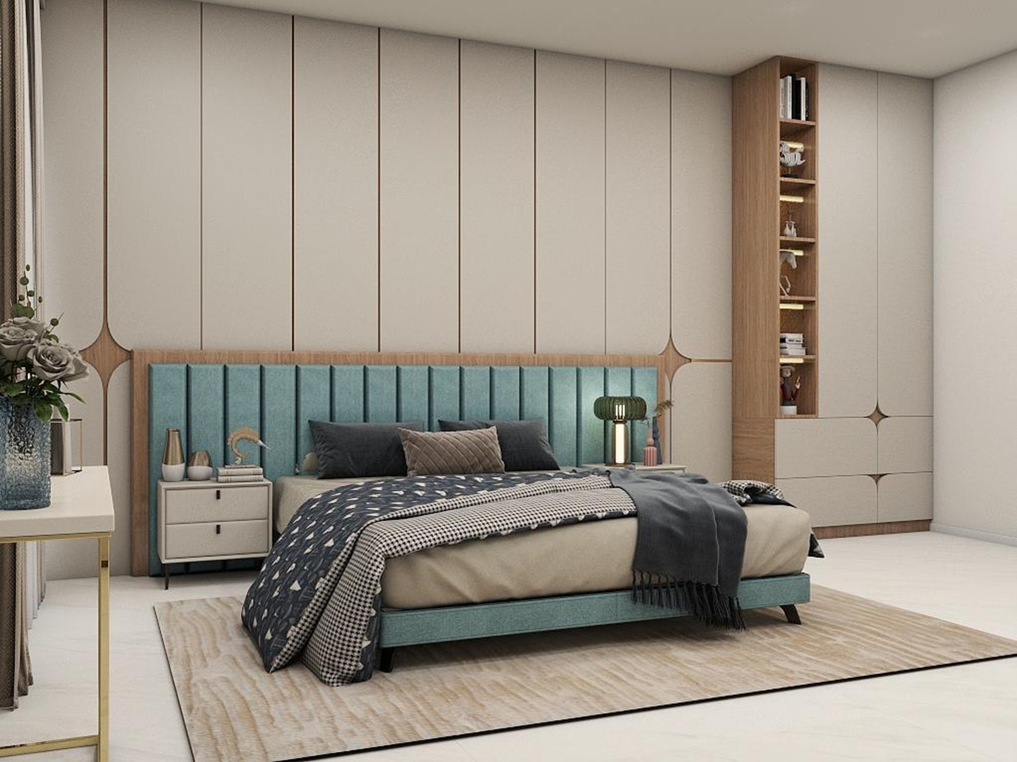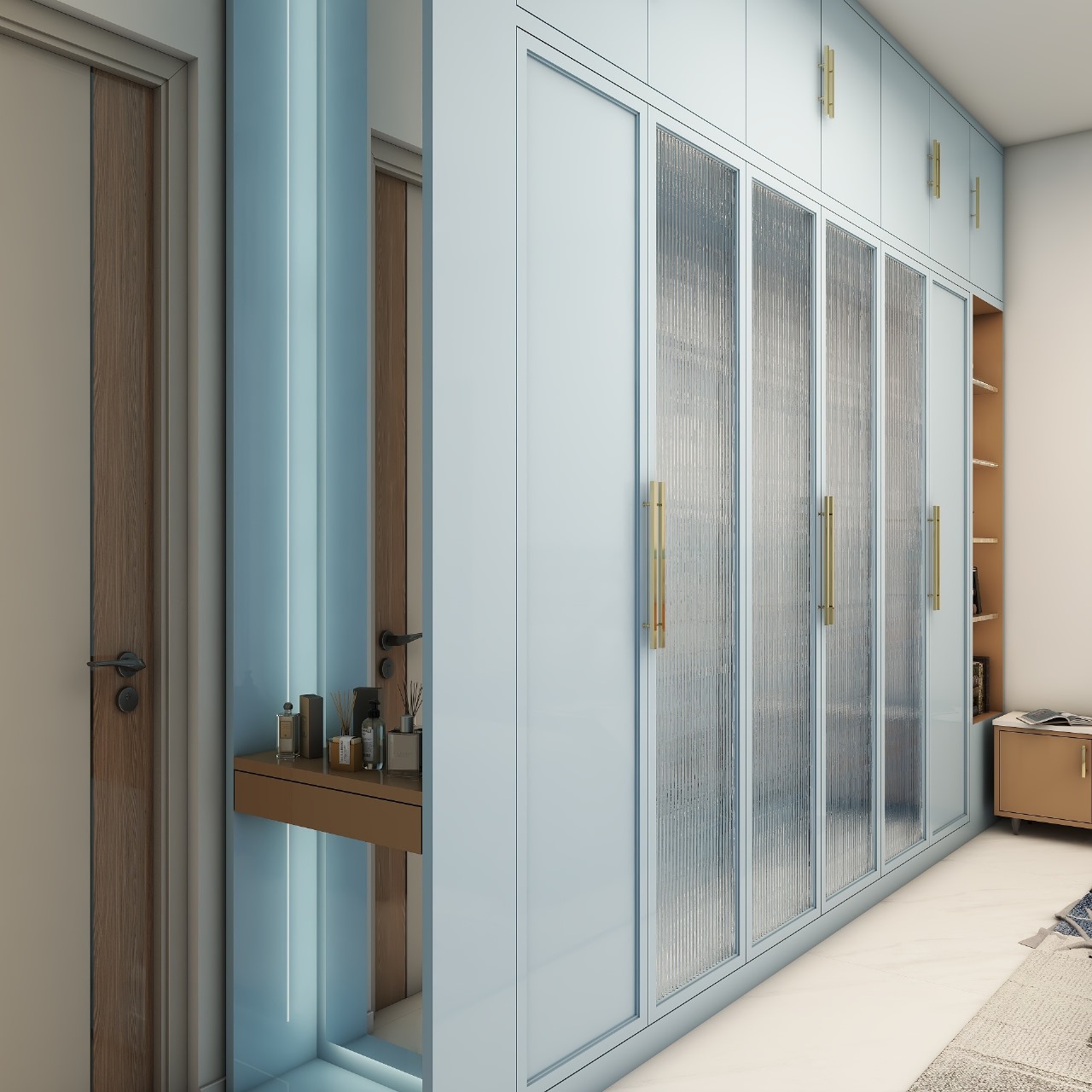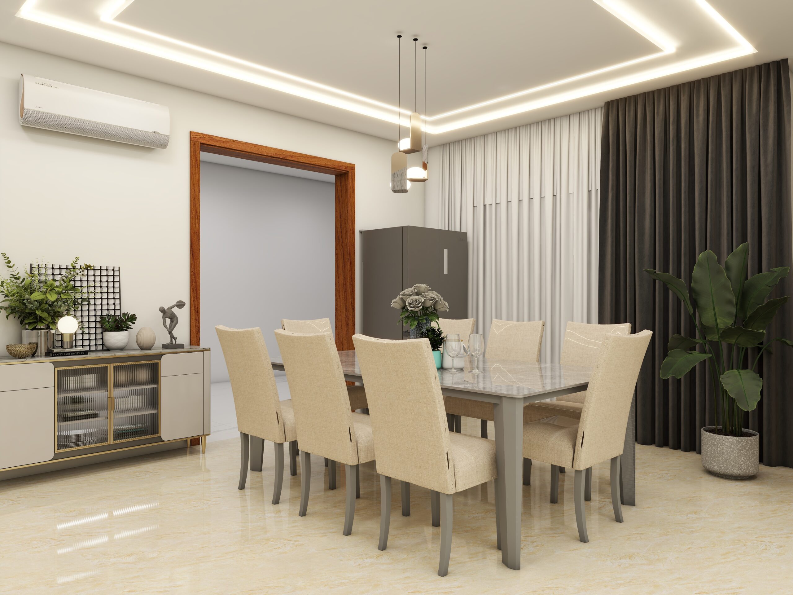 This 3D images of a 3-bedroom flat blends contemporary design with comfort, creating a modern yet inviting living space. Each room is styled in soft pastel tones, offering a serene and elegant atmosphere. Thoughtful interiors balance functionality with aesthetics, making the home both stylish and livable.